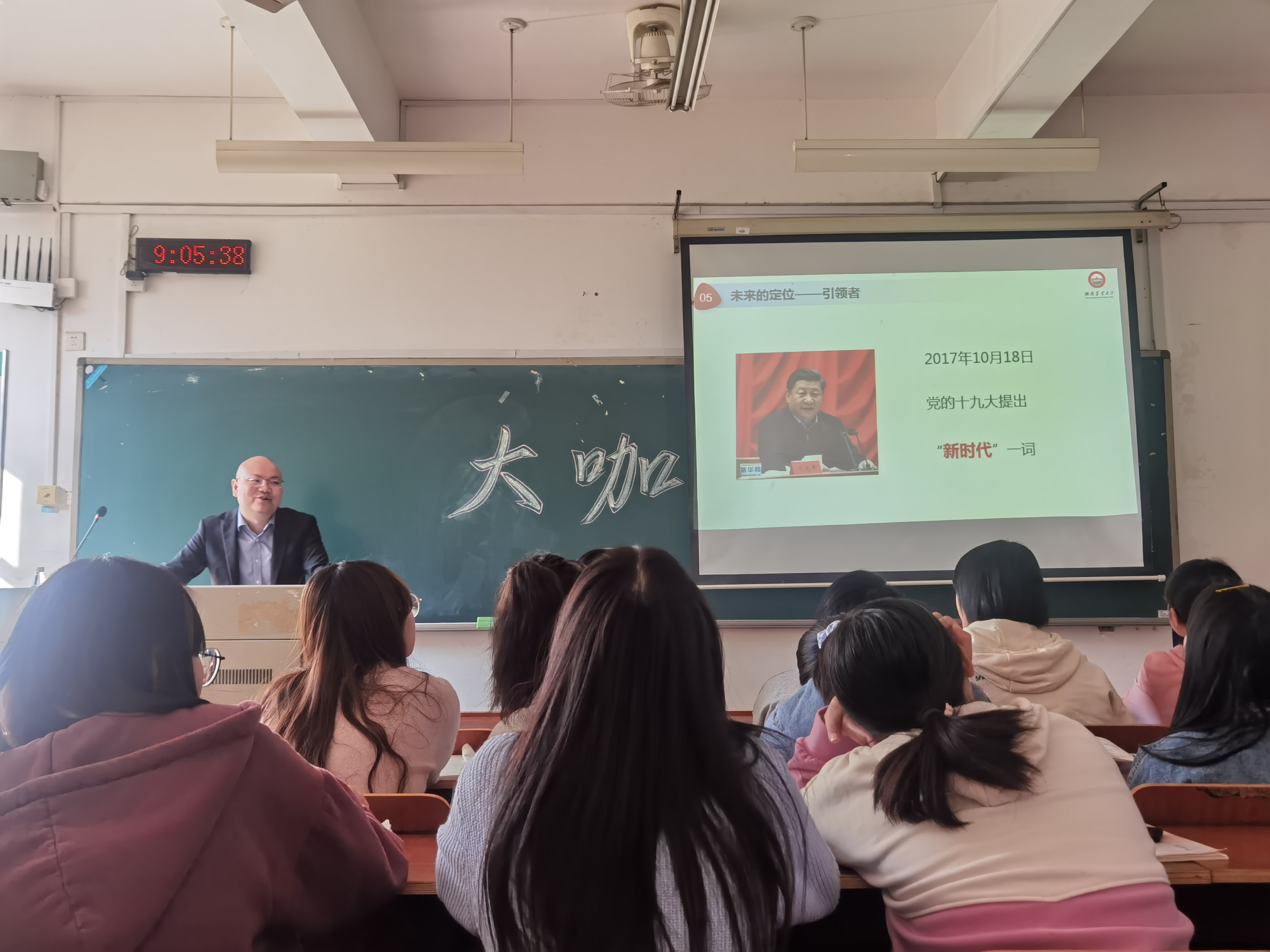 刘子腾老师从自我、历史、时代、实践以及未来等五个方面的定位,分享了自己的独到见解。他勉励思想政治教育二班的同学们:在这“百年未有之大变局”中,要做好社会主义建设的接班者;要做好古今中外优秀文化的传承者;要做好中国自信的守护者;做好永无止境的学习者;做好“新时代”的引领者。