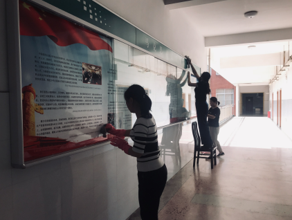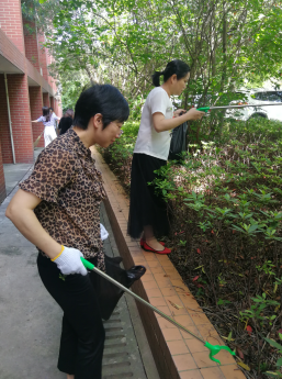 5月19日上午,老师们比往常来得更早,明确了工作区域后马上着手开始大扫除,大家兵分两路,一路打扫自己的办公室,一路打扫办公室公共区域,经过近两个小时的打扫,办公区域的卫生结束,大部队立马集结到十教楼下,按原来划分的五个区域进行打扫。