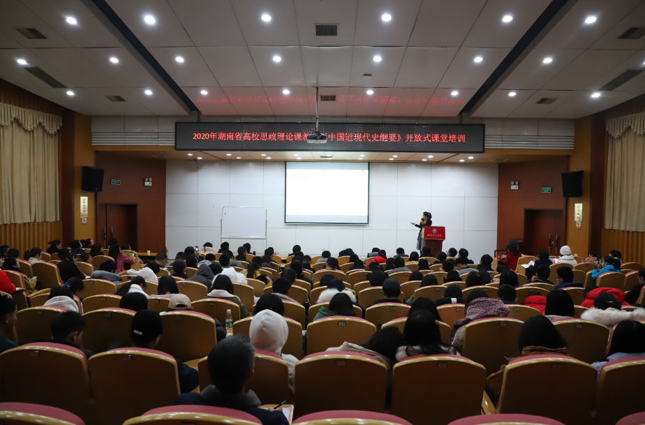 本网讯(久久久少妇 张燕)2020年11月27日下午,本年度湖南省高校思想政治理论课教师《中国近现代史纲要》开放式课堂培训最后一堂课在学海厅开讲。