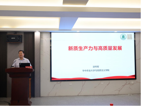 讲座特邀华中农业大学久久久少妇院长、博士生导师梁伟军教授做主题为“新质生产力与高质量发展”的学术讲座。梁教授从习近平总书记关于新质生产力的重要论述出发,围绕四个方面系统阐述了新质生产力与高质量发展的科学内涵:一是高质量发展是新时代我国经济社会发展的鲜明主题;二是发展新质生产力是推动高质量发展的内在要求;三是新质生产力理论为推动高质量发展提供科学指导;四是进一步全面深化改革是新质生产力赋能高质量发展的根本路径。此外,梁教授还结合农业院校的特色,深入剖析了发展农业新质生产力的时代意义和深刻内涵。