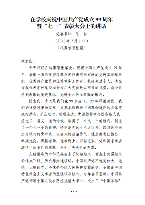 关于印发陈弘在学校庆祝中国共产党成立99周年暨“七一”表彰大会上讲话的通知-正文.pdf