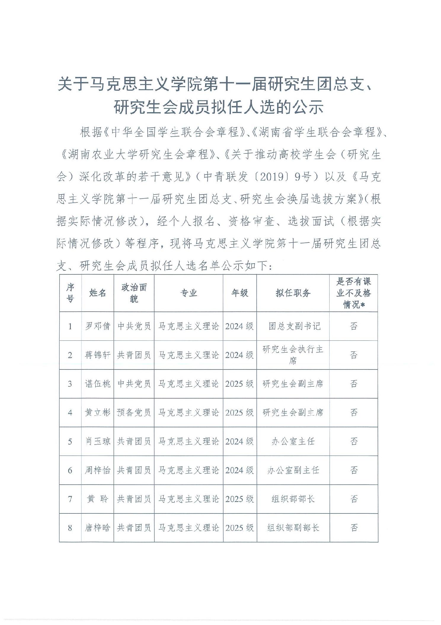 关于久久久少妇第十一届研究生团总支、研究生会成员拟任人选公示