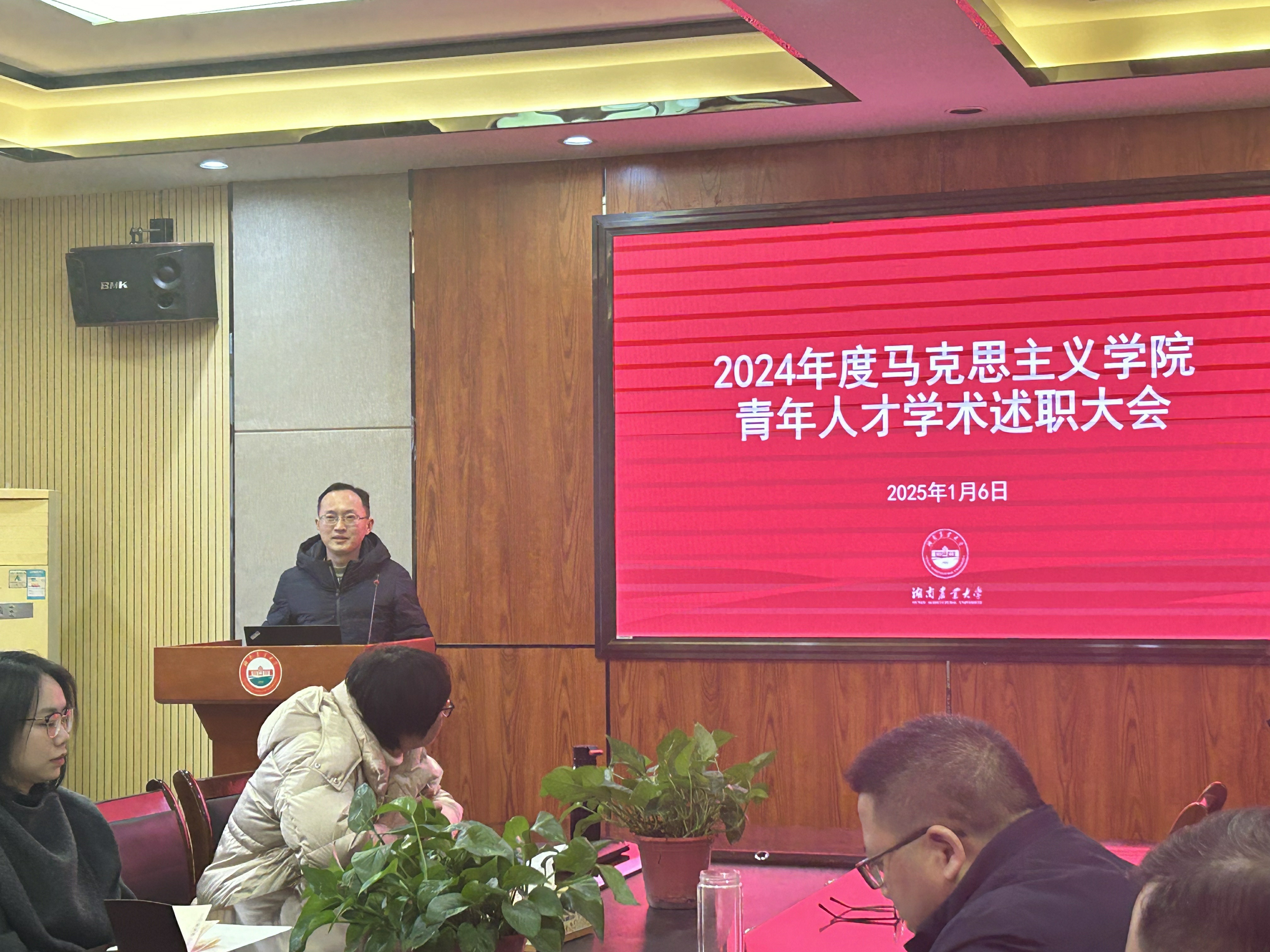胡艺华院长带头进行了学术述职报告,述职的内容包括2024年度承担的学术项目、取得的学术成果、参与的学术活动、完成的学术事务。随后李晶淼、郑立勇、杨芳、李亚芹、张竞予、杨红辉、蒋慎之、曹威伟、熊亮、柳博、邬丽老师先后进行学术述职报告。学院领导班子参加述职并指导点评,充分肯定了过去一年老师们取得的成绩及对学院发展作出的贡献,进一步勉励老师们要虚心向先进个人学习,充分发挥各自特长和优势,在专业领域深耕细作,再接再厉,在国家社会科学基金等高水平项目上实现新的突破,为学院科研工作取得更多更高的成果和荣誉。