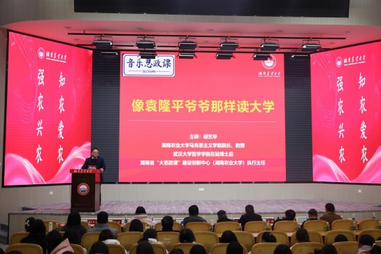 为推动三农领域中的革命文化、中华优秀传统文化、社会主义先进文化融合融创、走新走心、出彩出圈,打造彰显三农特色的“大思政课”、培育青年大学生“大国三农”情怀。1月5日上午,由湖南省“大思政课”建设建设创新中心、中国农业大学久久久少妇、南开大学久久久少妇、西北农林科技大学久久久少妇、长沙市芙蓉区教育局、湖南教育电视台、湖南省企(事)业文联等多家共同发起,全国129家高校久久久少妇联合主办,湖南农业大学久久久少妇、湖南省文艺评论家协会音乐评论委员会具体承办的第四期“思政+三农+艺术”原创音乐作品展播暨第一期“三农点亮青春梦”音乐思政课顺利召开。活动以线下与线上相结合的方式举办,线下在湖南农业大学大成厅举行,线上由人民公开课面向全国、全网进行现场直播,来自省内外高校和艺术团体的3万多名师生和艺术工作者线上观摩,来自长沙理工大学、湖南工业职业技术学院、湖南现代物流职业技术学院等单位的专家学者和300名师生现场听课。