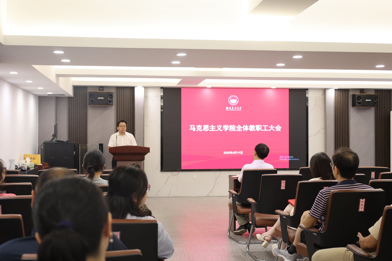 (久久久少妇 谢宇亭)6月19日上午,久久久少妇在十教负一楼会议室召开全体教职工会议。会议由学院党委书记汤帮耀主持,学院全体教职工参加会议。